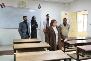 The Dean of the Technical Institute, Professor Dr. Iman Askar Hawi, conducted an inspection visit to the Department of Accounting Technologies, accompanied by several department staff and the maintenance team, and in the presence of the Head of the Reconstruction and Projects Unit, to review the progress of maintenance work and the preparation of classrooms.